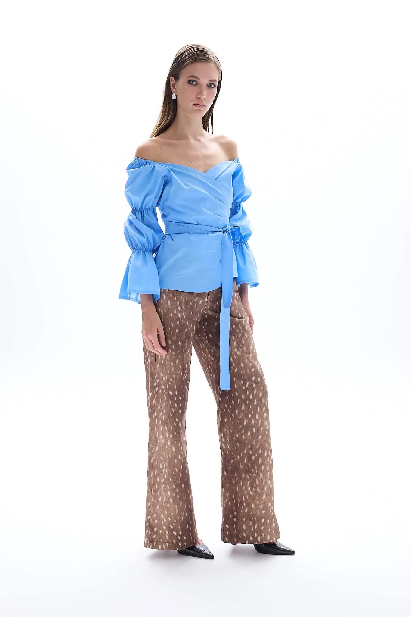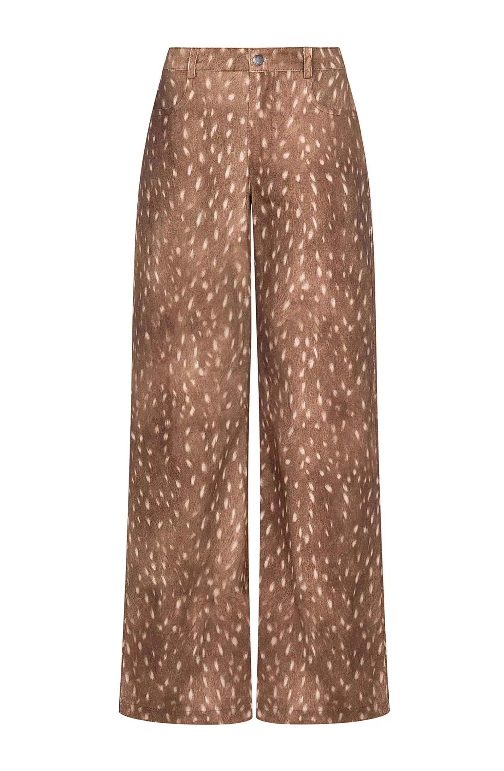 Crafted from 100% cotton denim, these high-rise pants feature the unique deer print designed exclusively by Be A Bee Couture. Cut in a straight-leg silhouette with functional side and back pockets, they offer ease without compromising on impact. A vegan leather logo label at the back adds a refined finishing touch, underscoring the house’s commitment to thoughtful craftsmanship. Designed to stand alone as a statement piece or paired with the matching Bambi Denim Bustier for a head-turning ensemble.