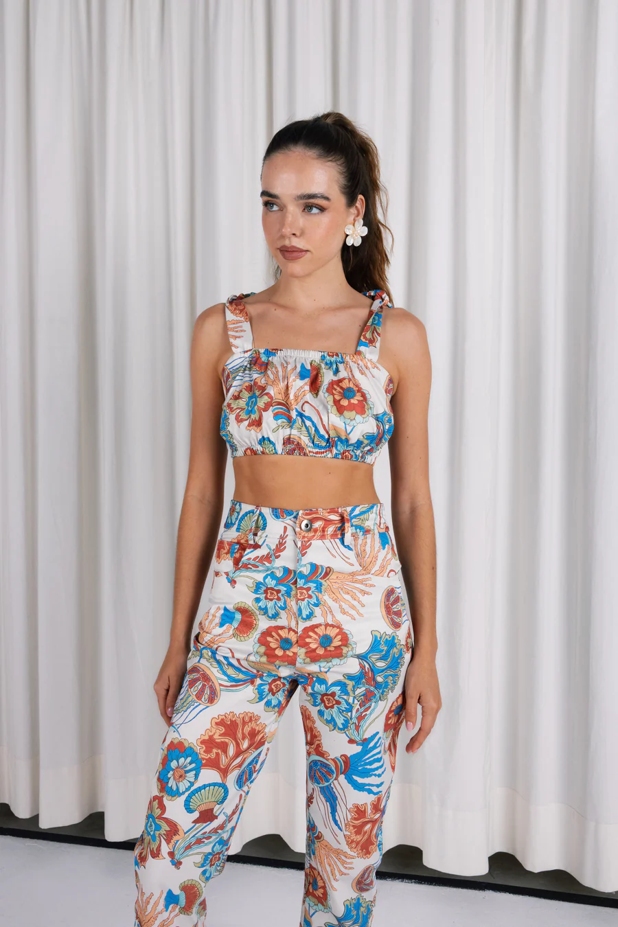 Printed top with tie on the shoulders