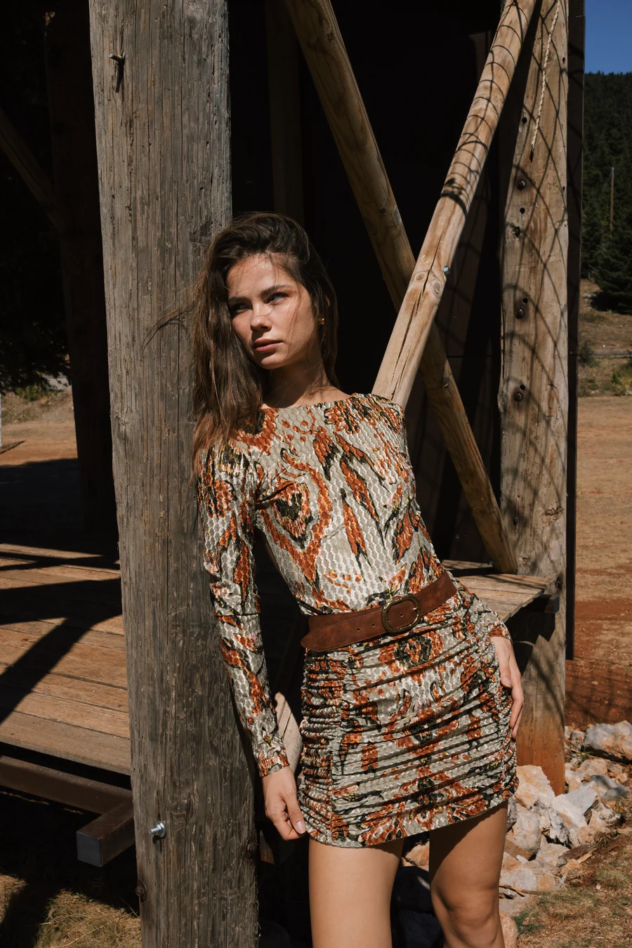 Velvet mini skirt Elastic waistband Side ruching 100% PES Made in Greece