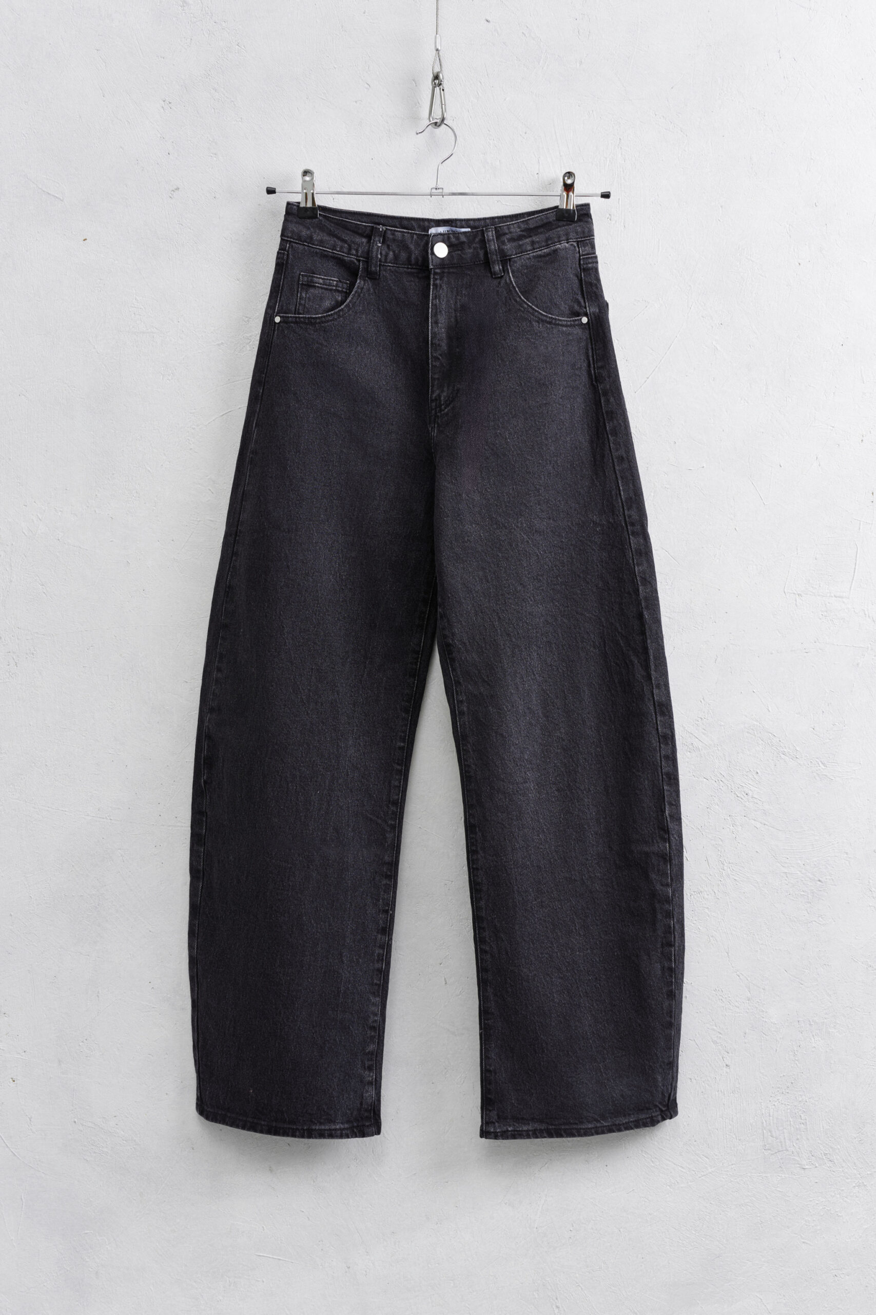 Cotton blend balloon jeans. 5 pockets. Zip and button closure. Regular fit, available in size S/M/L.