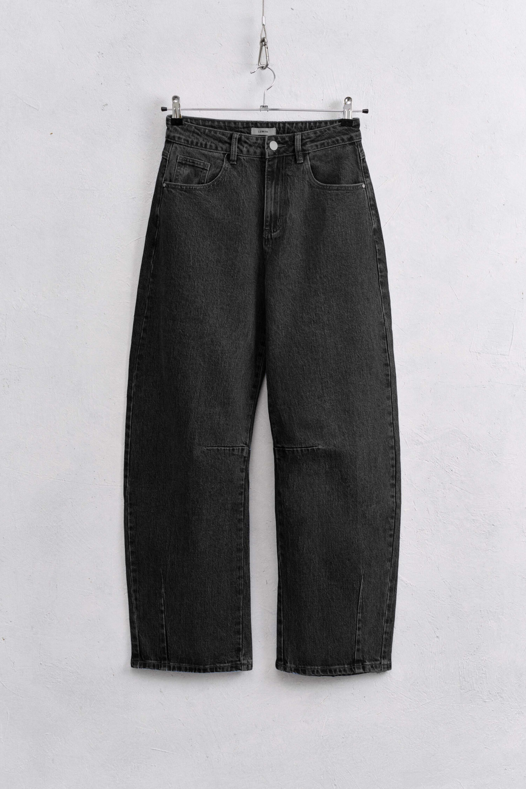 Barrel leg jeans. It has 5 pockets. Zip and button closure. Regular fit, available in size S/M/L