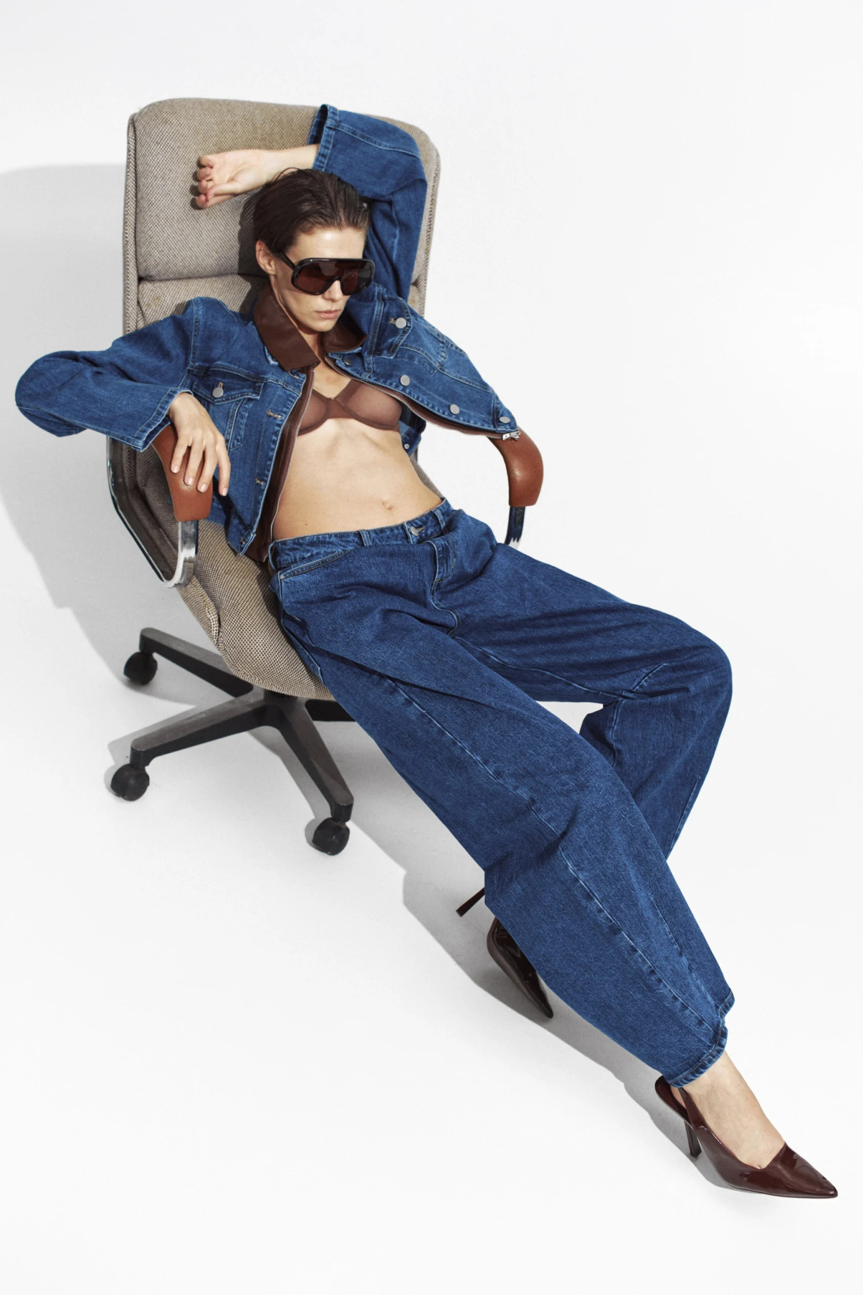 Barrel leg jeans. It has 5 pockets. Zip and button closure. Regular fit, available in size S/M/L