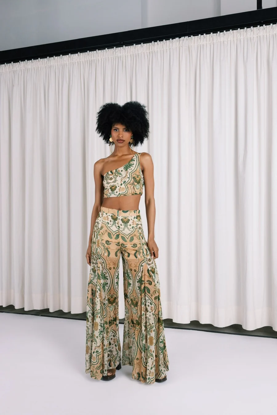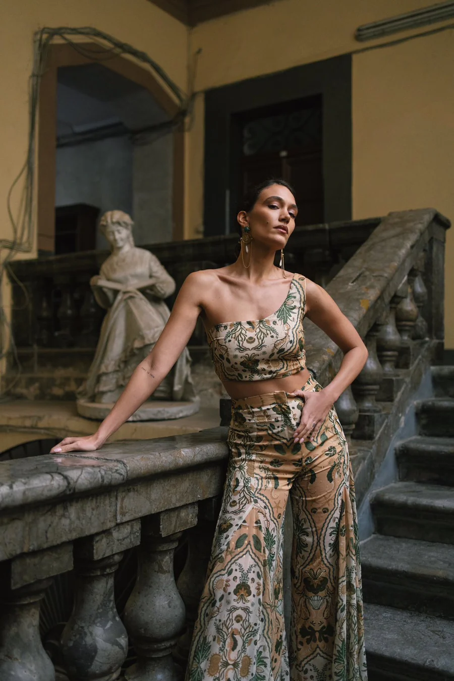 One shoulder top with elastic on the back 100%PES Made in Greece